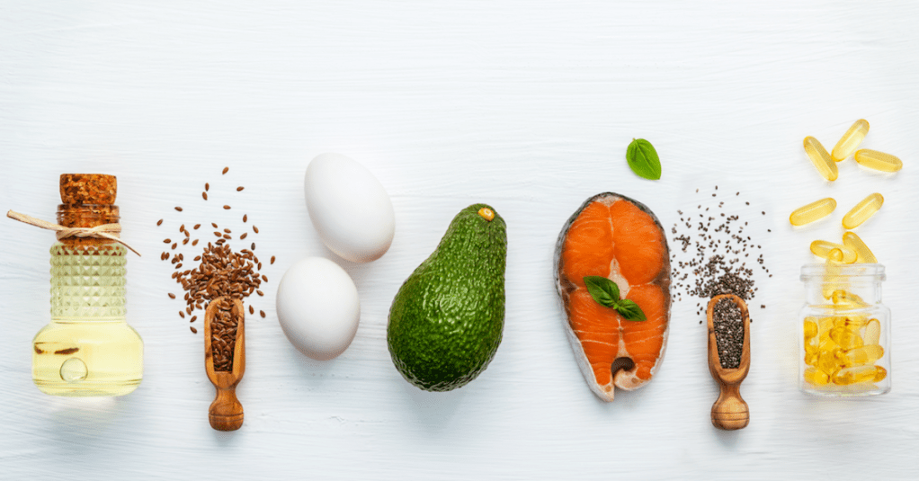Fuentes: Aceite de oliva, aceite de linaza, aguacate, frutos secos, semillas, pescado graso (salmón, caballa, etc.).